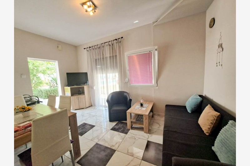 Poseduje komforne petokrevetne i sestokrevetne dupleks apartmane koji se nalaze u prizemlju. Sve smeštajne jedinice poseduju osnovno opremljenu kuhinju, kupatilo, terasu i TV. Promena posteljine je jednom u toku boravka, dok je korišćenje klima uređaja je ukljuceno u cenu. U vili postoji mogućnost korišćenja WiFi interneta.
