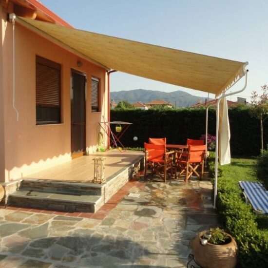 Nalazi se u mirnom delu Nea Vrasne u prelepom ambijentu, besprekorno uredjenom dvorištu, okruženom zelenilom. Bezbroj detalja prilikom uređivanja ove vile, na kojima vlasnici očigledno nisu štedeli, čini ovu vilu jednom od najluksuznijih i najlepših u Nea Vrasni.
