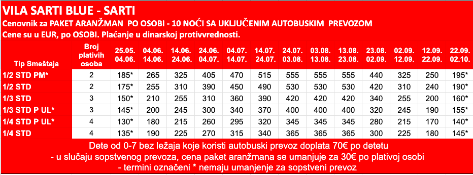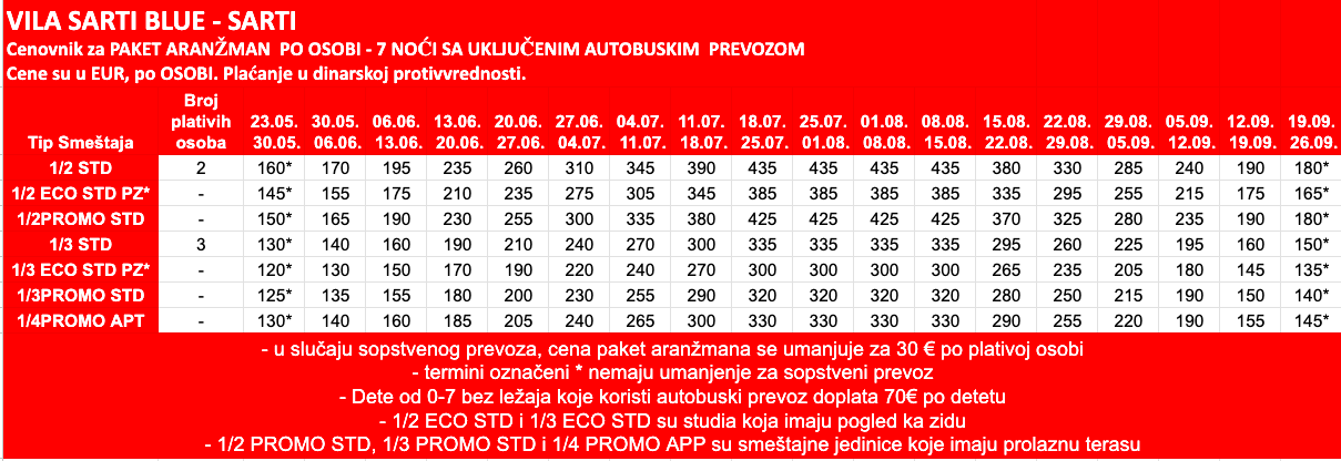 2*3*4*5*Akva parkAll InclusiveAll Inclusive LightAvio-turaBanskoBorovecBudvaBugarskaČanjCrna GoraDobre VodeDruge pogodnosti:Duplex / TriplexHotelHoteli na plažiItalijaKasandra - HalkidikiKitenLido di JesoloNesebarNoćenje-doručakNova godinaOhridPamporovoPet FriendlyPetrovacPolupansionPomoriePremium All InclusivePrivatan smeštajPun pansionRafailovićiRiminiSitonija - HalkidikiSozopolSrbijaSuncev BregŠušanjSveti VlasTip usluge:Ultra All InclusiveWellness & SpaZimovanjeZlatni Pjasci